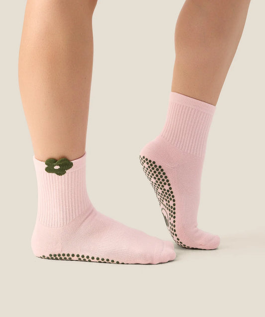 Crew Non Slip Grip Socks | Flower Patch Blush