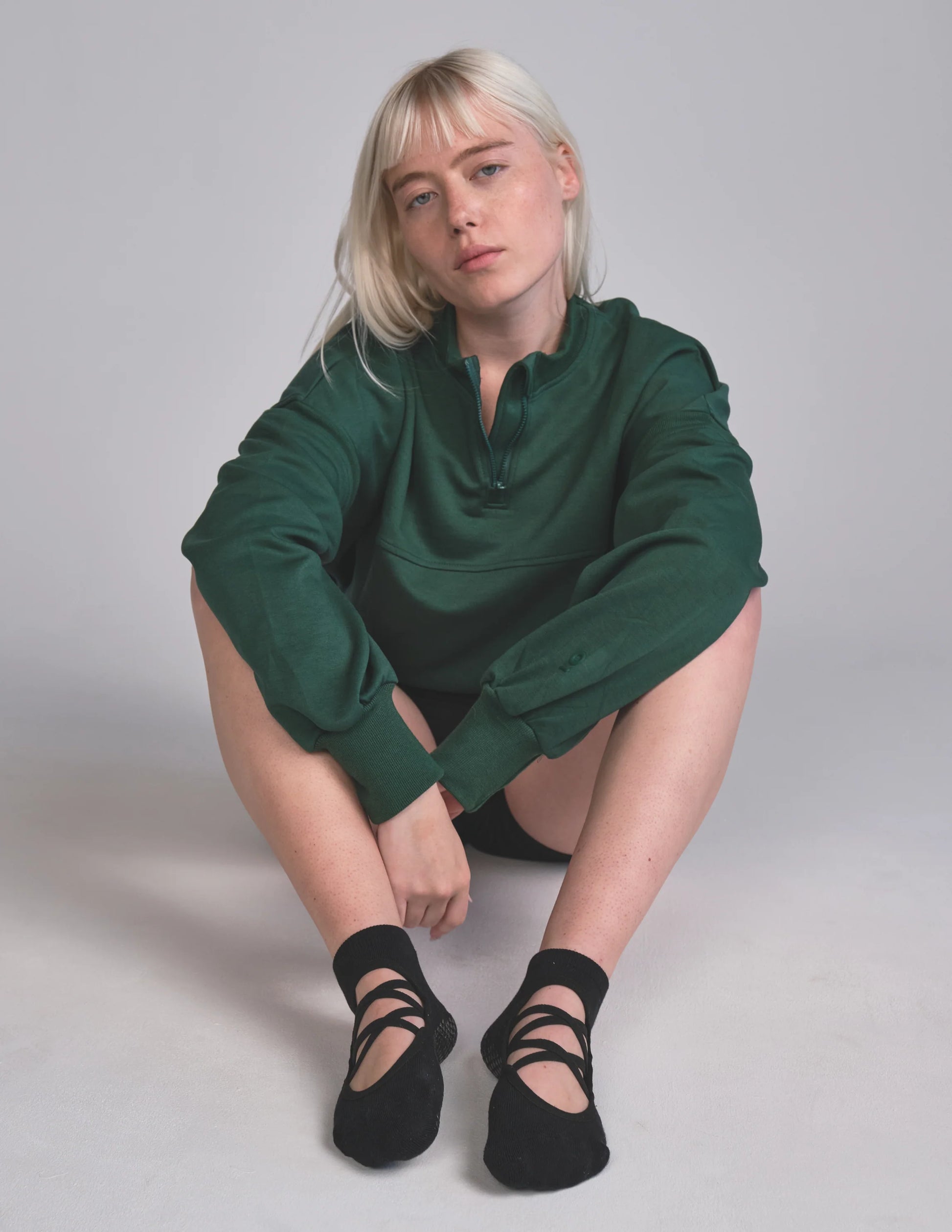 A monochrome moment, muted but never boring. The Isla Grip Sock brings elegance to every plié, plank, and pointed toe with its signature criss-cross straps and second-skin fit. Designed with Lucky Honey's classic hexagonal grips to ground your flow and a ballet-inspired silhouette that moves with you, she’s the ultimate mix of grace and style.